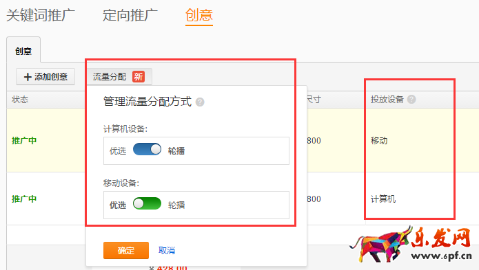 創(chuàng)意新增流量分配和投放設(shè)備選擇。PC端和無線端的競爭環(huán)境不同,兩個端口圖片相差也有點大,現(xiàn)在總算可以單獨制作pc端和移動端的圖片,這個功能直接影響點擊率的提升。而輪播則是測圖的時候非常實用,以前測圖流量都會往效果好的創(chuàng)意,另一個創(chuàng)意都沒什么流量,改版后測圖功能非常實用。優(yōu)選還是和以前默認一樣,系統(tǒng)會根據(jù)的創(chuàng)意歷史表現(xiàn)數(shù)據(jù)幫您優(yōu)選一個表現(xiàn)較好的創(chuàng)意進行集中展現(xiàn)。