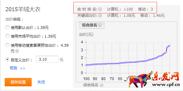 出價調(diào)整頁面新增pc端與無線端實時排名功能,可以實時關(guān)注無線端的排名,根據(jù)自己的流量需求調(diào)整排名。由于小賣家預(yù)算往往較少,但是移動端首屏估價又很高,對這樣的客戶,我們選擇退而求其次,選擇略微靠后的位置,如20~40左右的排名,也為客戶帶來了不錯的效果。