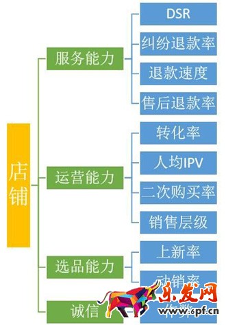 店鋪權(quán)重分為服務(wù)能力、運(yùn)營(yíng)能力、選貨能力和誠(chéng)信。