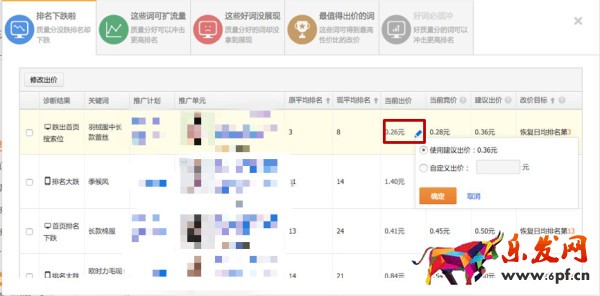 5、最值得出價的詞:最值得出價的詞:部分關鍵詞的排名通過稍微調價即可獲得較大的排名提升。