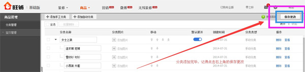 五、添加分類欄目之后,切記一定要點擊右上角的“保存更改”,如下圖