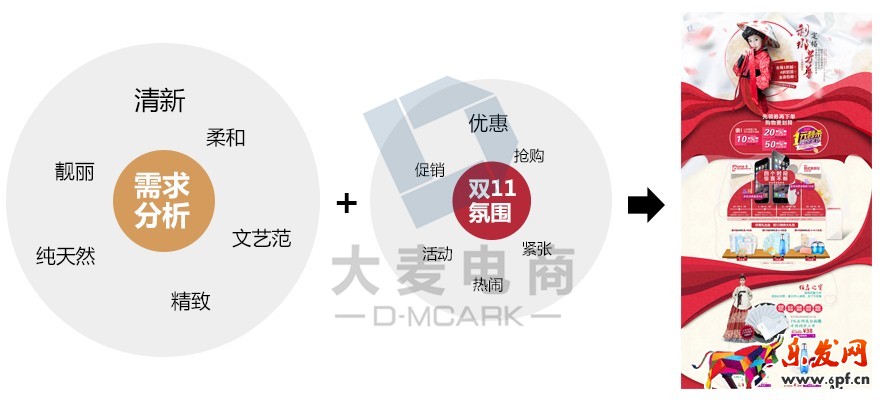 當(dāng)看到要先為頁(yè)面定位時(shí),相信很多人都納悶了,“雙11定位還要多想嗎,肯定是促銷、喜慶啦”。當(dāng)然,促銷和喜慶是固然的,也是我們雙11活動(dòng)的主要基調(diào)。然而,要從千軍萬(wàn)馬中先拔頭籌,我們一定要靜下心來(lái),理性分析店鋪的定位與用戶需求,盡可能將這些需求通過(guò)具象的詞表現(xiàn)出來(lái)。并與雙11的促銷氛圍有機(jī)的結(jié)合,形成有店鋪特色,有情感的雙11落地頁(yè),在滿足用戶想要優(yōu)惠的理性需求的同時(shí)滿足用戶的情感需求。