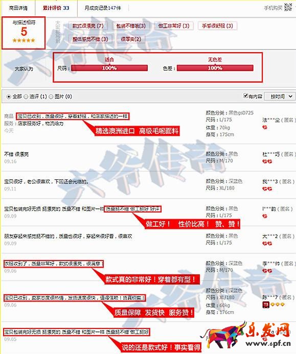 6)評價信息:好的評價信息,可以給買家放心購買的信心,一張好評如潮的圖片,可以大大拉升寶貝的逼格!