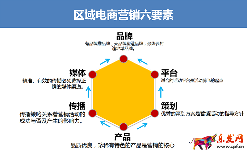 其次,縣域電商營銷有六大要素。