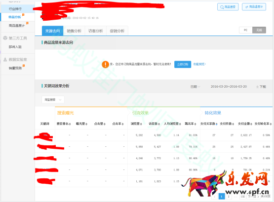 上面兩張圖片是單品的進店關鍵詞的數據,可以看到PC端的點擊率和無線端的成交量,通過這幾個數據能夠知道哪些關鍵詞點擊率好成交比較好,就能計算出寶貝是否合格。
