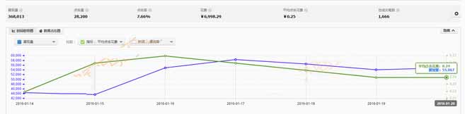 很多小伙伴都沒怎么看過直通車報表,上面這個是一個展現和PPC的數據線。可能不是特別明顯,因為這個車本身就比較穩定,你們可以去看看自己的。拿這個數據線去進行對比一下。后面大家一定要去多看看,并且發現其中的規律。當展現量或者點擊率掉到一個點的時候他PPC就會漲,當點擊率還有其他緯度穩定的時候PPC會越來越低。