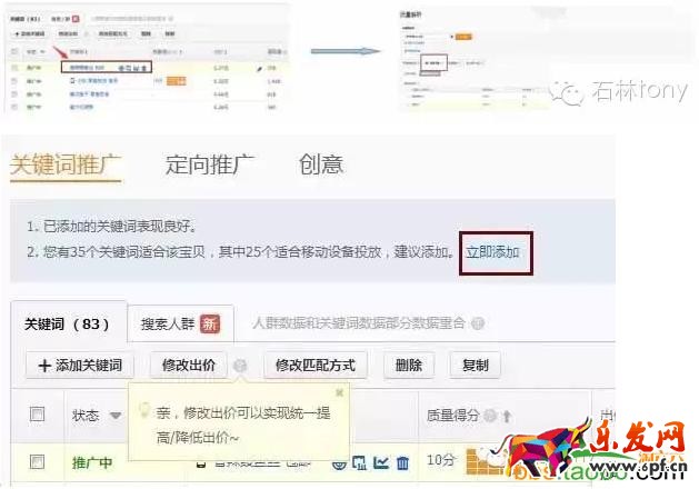 但是單單從操作淘寶/天貓直通車的角度來說,對于一些有轉化成交的詞,適當提高出價,添加轉化詞的衍生詞及淘寶/天貓直通車后臺“優化建議”給出轉化率高的詞;