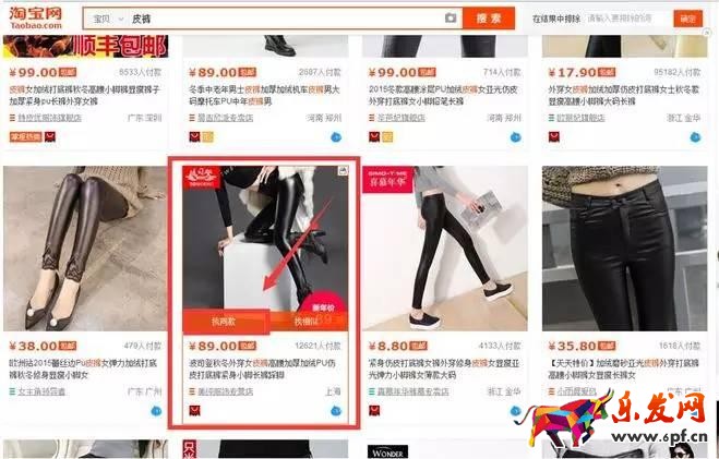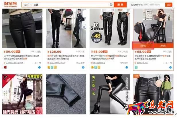 打開淘寶搜關鍵詞,搜索“皮褲”,然后找到自己的款式,點擊找同款: