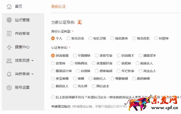 第二步:點擊之后,會出現“身份認證”,然后勾選身份認證類型:個人,認證身份名:時尚編輯(視個人情況來選擇)