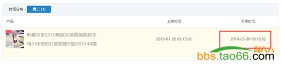 啥意思?我在上午9點的時候,查詢“T恤”這個詞,韓都衣舍的一款寶貝排在第二行第四位,當(dāng)時我看了一下他的下架時間:2016年3月29號上午9:15分,對了說明一下,我查的時候,也是3月29號。等我在10點查的時候,我只看了第一頁,已經(jīng)沒有了。對,你會說,這不能說明什么。好吧,愿意看的繼續(xù)往下看!