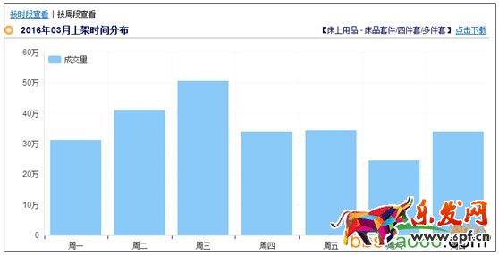 分析路徑:生e經(jīng)——行業(yè)分析——找到你經(jīng)營的類目(可以一直細分到葉子類目)——最近完整的自然月數(shù)據(jù)——上架時間分布,我們以床上用品四件套為例