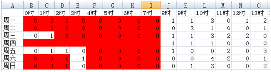 分別有“按時段查看”和“按周段查看”,數據可以下載下來。這里面唯一說明的是時間段的概念,0時,表示的是0點——0點59分59秒這個區間,以此類推。從數據中可以看到,每天晚上9點——10點之間銷量就是最高的。