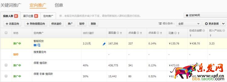 精準(zhǔn)定向有助于引進(jìn)更多的精準(zhǔn)流量,利用訪客定向,購物意圖定向,展示位置的投放等等測(cè)試引進(jìn)更加精準(zhǔn)的流量。訪客定向包括喜歡我店鋪的訪客和喜歡我同類店鋪的訪客,可以定向?qū)Φ赇佊信d趣的訪客進(jìn)行投放,提高流量的反饋效果。購物意圖定向可以根據(jù)買家的購買興趣針對(duì)性的投放,也提高了流量的精準(zhǔn)度。