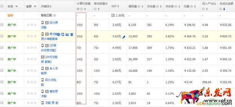 影響關(guān)鍵詞的質(zhì)量得分的因素有: 1.)提高關(guān)鍵詞與寶貝標(biāo)題屬性的匹配相關(guān)度。2.)提高關(guān)鍵詞與寶貝詳情頁之間的匹配相關(guān)度。3.)提高寶貝的點(diǎn)擊率4.)提高關(guān)鍵詞的流量,收藏,轉(zhuǎn)化。5.)提高關(guān)鍵詞的競(jìng)爭(zhēng)度。
