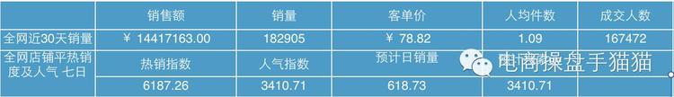 大家一看,喲,還不錯(cuò)喲,一個(gè)月1440w的營業(yè)額,平均到店鋪7天有3410個(gè)人氣,每天可以成交618件寶貝,特別棒!這是一個(gè)不錯(cuò)的類目。