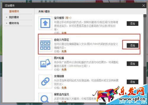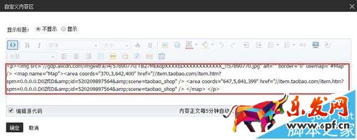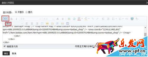 8、進入淘寶后臺店鋪裝修,添加自定義內容區,將代碼粘貼到源碼中