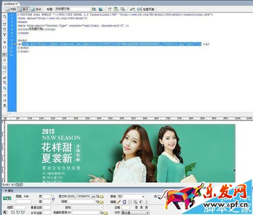 4、將圖片地址添加好之后,將整個代碼復制,并開啟DW,新建html文件,將代碼粘貼放到<body></body>之間