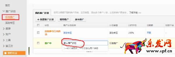 2.然后就會進入到推廣計劃后臺,在標準計劃中,會自動出現一個默認推廣計劃,這時候就可以修改推廣計劃的名字。【PS:這里修改推廣計劃的名字,主要是為了方便管理,不會影響到推廣內容。】