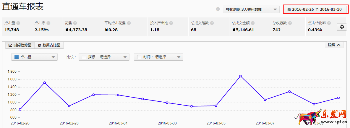 店鋪是在2月26號開始推廣直通車的,在26號之前店鋪基本上是沒有流量的,只有少部分淘寶客的流量,而且店鋪的款式也是沒有銷量的,在26號之后店鋪的流量開始慢慢的增加。