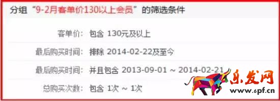 細分出每個組之后,再針對每個組的細分條件進行分析,了解目標會員組的各種行為屬性,以便針對不同的營銷組進行不同的營銷策略。如下圖