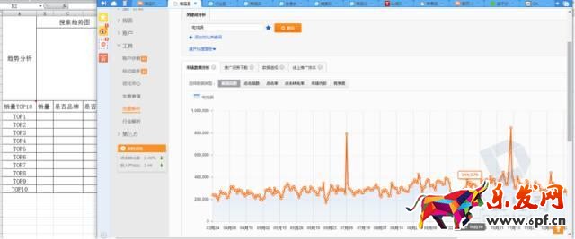 這里,我們可以借用直通車流量解析工具來協助。以搜索電燉鍋為例,展現指數就可以反映該詞的搜索熱度。我們可以盡量多搜索幾個相關詞,綜合判斷趨勢。