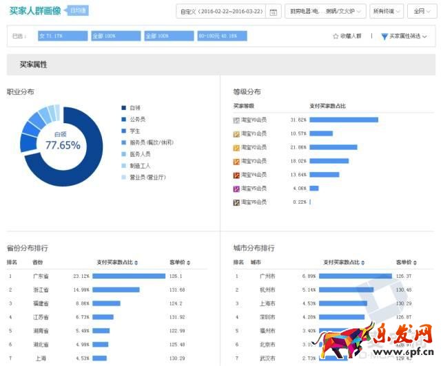 在分析該類目買家人群時,我們要了解購買這類產品的人群是什么樣子。分析完行業搜索及成交趨勢、行業品牌分布及熱銷品牌、行業熱銷寶貝、買家人群分布后,我們大概就能知道目前行業的情況是怎樣的了,自己心里能有個底。