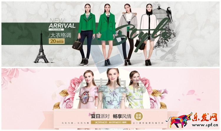對于女裝來講,是一個隨著季節、氣候的變化而變化,不斷推出應季的新產品,春夏秋冬四季都會遇到要做些應季的海報設計,當然不同季節有不同的氛圍,例如春季:春意盎然、萬物復蘇;夏季:夏陽酷暑、嬌陽似火;秋季:秋意深濃、天朗氣清;冬季:冬寒抱冰,白雪茫茫,海報可以通過這些季節獨有的氛圍來設計。