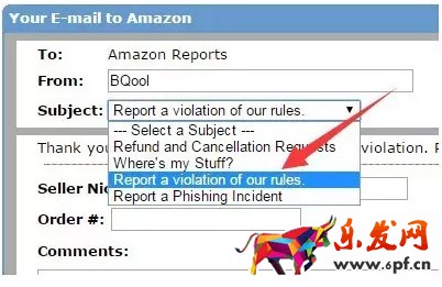 a、賣(mài)家要到http://www.amazon.com/gp/help/reports/contact-us來(lái)跟亞馬遜Seller Performance Team來(lái)聯(lián)系!確保你選擇"Report a violation of our rules”