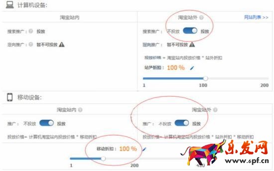 針對展現量更多偏向于PC端,而PC端對應點擊率偏低的問題上,我們一方面提高了無線投放折扣之外,我們可以讓PC端展現比較多的創意圖片只投放到無線端(如下圖),近兩天再觀察對應創意的展現和點擊率情況,如果點擊率還跟不上,操作方面主要就是更換創意圖片了。
