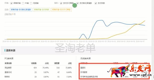 再來看流量來源,PC跟無線相比,PC端的流量只要1000多,更多的流量來自無線端,而且是無線端的“手淘其他店鋪商品詳情”,這就是流量的根源。