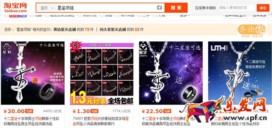 搜索“星座項鏈”,競爭寶貝有幾萬件,大家的思路幾乎都是一樣的:十二星座可選!然后你就會看到,詳情頁介紹的時候都是一樣的:材質、款式、細節……,那就競爭吧,激烈的價格競爭!這種情況下,絕對的價格優勢一般會出現在規模最大的那個店鋪上!