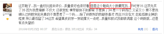 通過對前2家競爭對手評論的剛才,其中買家最在意的是鞋子的款式、質量、舒適度、碼數是否合腳,而服務質量也是買家比較在意的。在了解了買家的需求后,再回過頭看看自己店鋪的評論有哪些是做不好的,哪些的做的不錯可以繼續維持的。在檢查自身評論的時候可以看出買家對寶貝的款式質量是比較認可的,但是對于鞋碼和舒適度不是很滿意。
