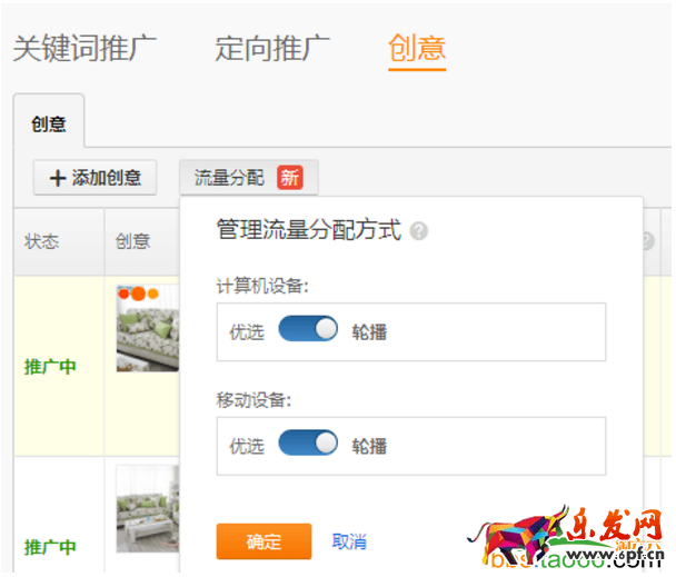 圖片創意按鈕那里分為優選和輪播,建議在測圖剛開始的時候,選擇4張圖片輪播測試,然后積累一定的點擊量之后,然后分別從計算機或者無線端找出點擊率相對都比較差的圖片,然后進行刪除替換。
