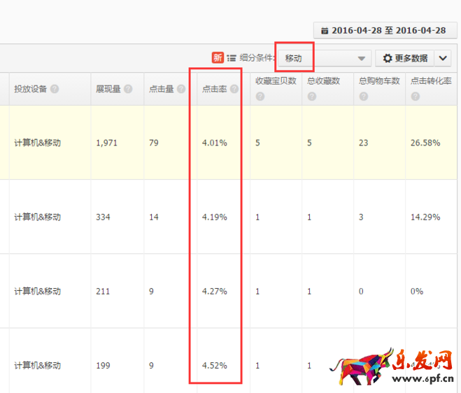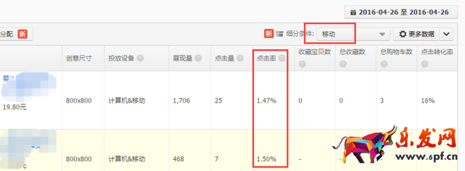 看一下28號(hào)一整天的移動(dòng)點(diǎn)擊率,恩。。出了點(diǎn)效果,翻了1倍多了,但是還不夠,看過我上篇文章的朋友 都知道點(diǎn)擊率能做到8.17%呢,