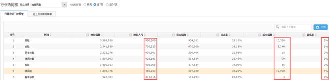 注明:人氣指數代表流量指數 熱賣指數代表銷售指數 由此數據可以得出商家的7天周期的一個店鋪轉化數據。OK?