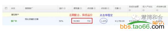 直通車潛在客戶最終溢價:50%左右,溢價降低,點擊率穩定,展現量提高,點擊量提高,并且轉化效果穩定。