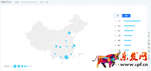 從地域分析可以看出需求足球服的訪客主要是集中到廣東省、其次浙江省,江蘇省,那么我們可以根據這些信息來調整地域方面設置。主要投放中東部地區,西北部可以選擇不投放。