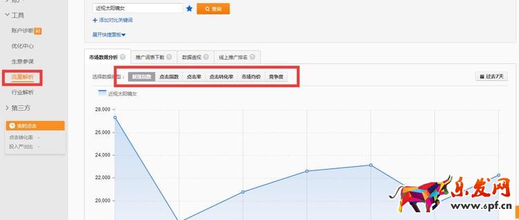 第一淘寶搜索下拉框推薦,找到自己的核心詞,下拉框推薦詞進行流量解析里面的數(shù)據(jù)分析;直通車關(guān)鍵詞我們需要分析的數(shù)據(jù)有幾個,第一行業(yè)展現(xiàn)、第二行業(yè)點擊率、第三行業(yè)轉(zhuǎn)化率、第四點擊單價、第五競爭度。