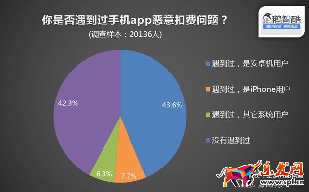 在遭遇過App惡意扣費的網(wǎng)民中,安卓手機用戶占比最高,達(dá)到44%,與之相比,蘋果系統(tǒng)用戶占比僅為8%。