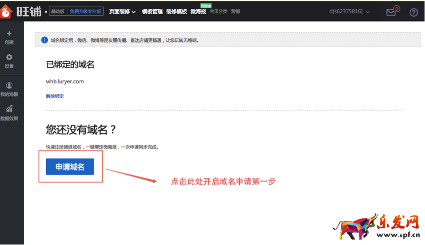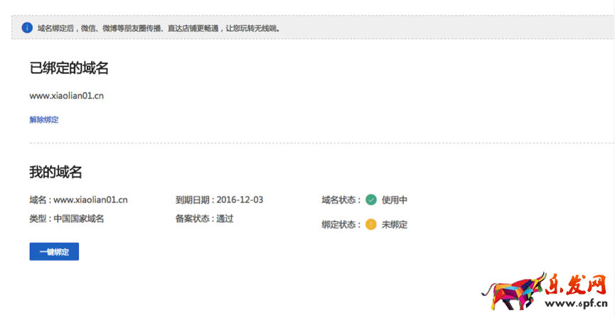 第四步,點擊“立即綁定”完成頂級域名和微海報的綁定: