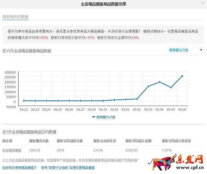 同時提醒一下大家,一定要開通<<精品櫥窗>>,關于這個工具的使用方法,我有給百年天貓錄制視頻,大家可以在天貓智庫查看,這里分享一個使用精品櫥窗一周的效果報表: