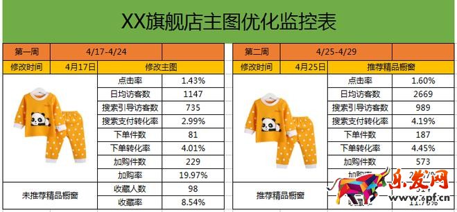 講完了銷量增速,下面我們來講點擊率和轉化率,因為前面我們所做的是CRM及第三方特賣平臺,轉化率上面不用擔心,只要選品沒有問題,轉化率一般都會非常好。談到主圖點擊率,這里分享一個表格,測圖方法可以是使用直通車,圖不光看點擊率,還要看點擊轉化率:
