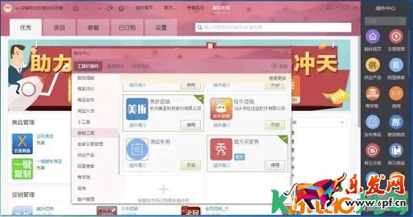 打開pc千牛(目前僅支持pc千牛發布)在右下角的[管理]-[工具]-[營銷工具]找到[官方買家秀]點擊[開啟]使用。