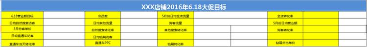 無論你確定是哪個目標,都要先做一個目標營業額,目標營業額的確定建議根據5月份的一個營業額來確定。根據多年操作經驗,給到各位親目標參考:日均營業額千元以下的店鋪,大促當天可以翻1-5倍;日均營業額千元-萬元的店鋪,大促當天可以翻3-7倍;日均營業額萬元-8萬的店鋪,大促當天可以翻5-10倍;日均營業額8萬元以上的店鋪,大促當天可以翻20倍;這里之所以有跨度就是還要考慮店鋪的基礎,是否是應季產品,是否有小爆款,活動促銷力度是否給力等因素。