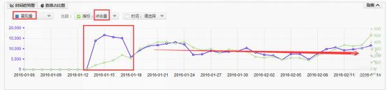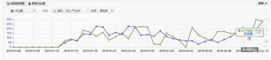 分析:該賬戶屬于廚房/烹飪用具類目。開始調整時,首先是引流優化賬戶的點擊率,針對不相關詞,高展現流量的詞進行優化。經過優化后流量有上升并趨于穩定走勢。兩款寶貝的roi比較波動,無明顯上升趨勢。