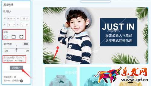 點擊素材圖上任意位置后,左邊就會出來圖片編輯區。按上面顯示的圖片尺寸先準備好要替換的素材圖在電腦上或者店鋪后臺圖片空間里,然后點擊【改換圖片】