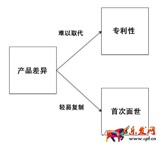 產品差異既可能是具有專利性的,也可能只是首次面市而已。區別兩者的一個重要因素就是看這種差異性是否能夠被輕易復制。