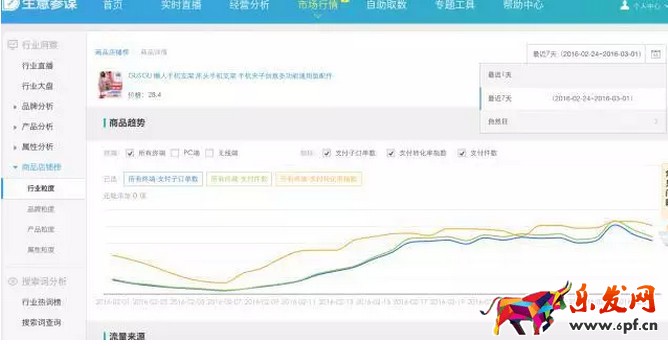 在生意參謀的市場行情,左邊有個(gè)商品店鋪榜,點(diǎn)開行業(yè)粒度,會給你展示昨天或者過去7天平均銷售最好的單品。點(diǎn)擊后面的查看詳情,就可以看到對手產(chǎn)品的流量結(jié)構(gòu)和引流成交關(guān)鍵詞。 對比引流詞看成交詞,如果流量大,成交詞沒有說明這個(gè)詞不精準(zhǔn),可以不要;如果標(biāo)題里有的關(guān)鍵詞,沒有出現(xiàn)在成交詞里,我們也盡量避免用這個(gè)詞。 為了避免小概率事件,對手詞盡量看三個(gè)寶貝以上。