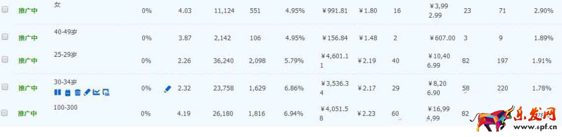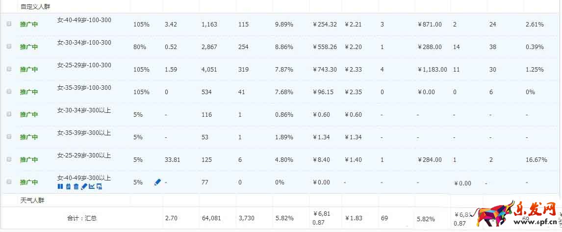 天氣人群玩法一樣很簡單,一般情況下只用一級標簽。針對不同產品進行分析,得出此類產品的側重標簽,然后針對各個標簽的表現情況進行溢價調整。