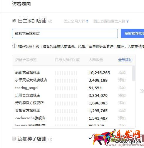 如果你看著覺得合適的話,就可以把它的店鋪圈入鉆展的自主添加店鋪里面,看看能圈出多少人,它圈的人數越多競爭可能越大